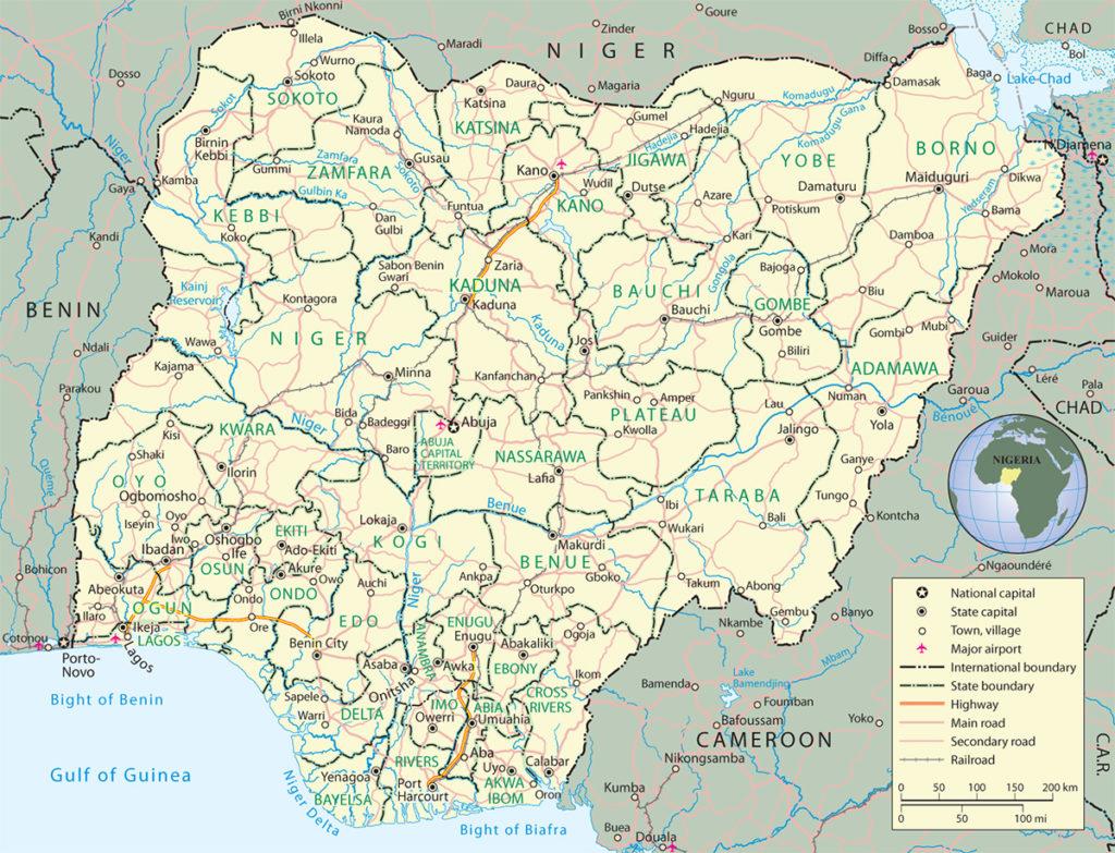 Nigeriano mapa com os estados e capitais